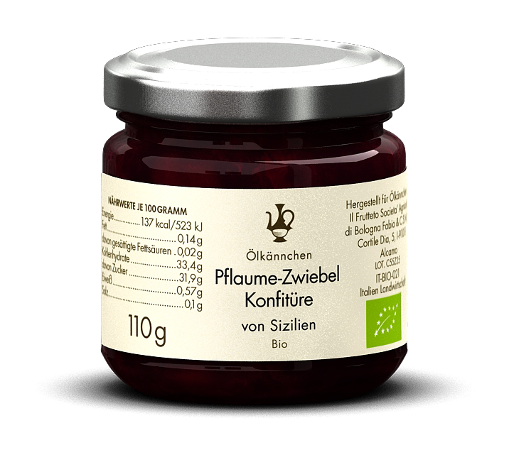 Bio Pflaume-Zwiebel Konfitüre von Sizilien - Käsebegleitung zu Weich- und Weißkäsen.